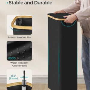Úzký koš na prádlo 65 l, černý, bambusový okraj