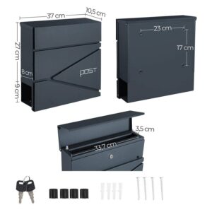 Vytvořte stylový první dojem s touto moderní poštovní schránkou v antracitové barvě. Geometrické tvary a elegantní linie z ní dělají nejen praktický, ale i designový doplněk vašeho domova. Tiché zavírání víka zajistí, že vás nebude rušit žádný hluk.