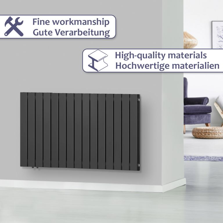Tento moderní radiátor nabízí kromě plochého vzhledu i působivý výkon. S tepelným výkonem 1365 wattů, antracitovou ocelovou konstrukcí a moderním designem zahřeje nejen váš domov, ale i váš interiér. Upozornění: Ventily radiátorů nejsou součástí balení.