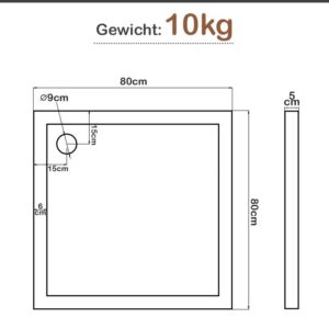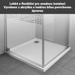Tento konkrétní model sprchové vaničky je vyroben ze spolehlivého akrylátu a má hloubku 5 cm, což umožňuje snadnější přístup do sprchy. Stylová a elegantní sprchová vanička s velmi tenkým profilem. Má snadno čistitelný lesklý povrch. Tento model je třeba zvednout 12 cm od podlahy. Oboustranná instalace – podstavec lze namontovat podle potřeby. Poznámka: Nožičky k vaně a odtoková souprava nejsou součástí dodávky.