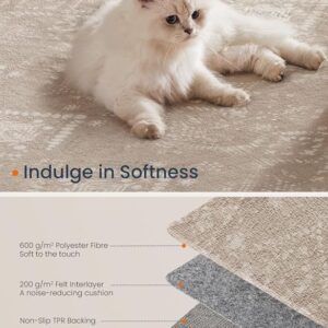 Koberec je vyroben z kvalitních polyesterových vláken s filcovou vrstvou a protiskluzovou TPR spodní stranou, takže pevně drží na místě i na hladkých podlahách. Snadno se udržuje – lze jej prát v pračce, aniž by ztratil měkkost nebo tvar. Díky skladnému designu jej jednoduše složíte a přenesete kamkoli potřebujete.