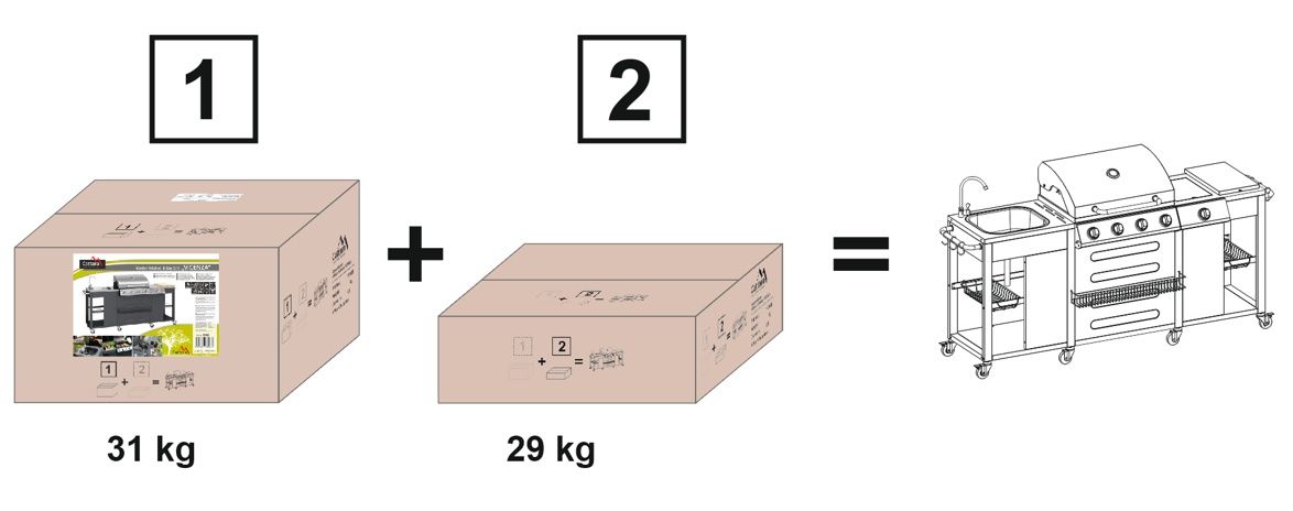 - rozměry balení: 2x kartony – 31 kg (77 x 60 x 45 cm) + 29 kg (75 x 64 x 25 cm)