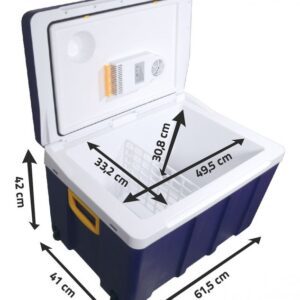Přenosný chladicí box s možností ohřevu, napájení ze zásuvky autozapalovače 12 V, nebo z běžné zásuvky 230 V. Jedná se o chladicí box na termoelektrické bázi s ventilátorovým systémem chlazení, neobsahujícím žádné freony. Systém je navíc vybaven i režimem ohřevu, kdy je možné udržovat uvnitř boxu teplotu 50 – 65 °C. Chladicí box je velmi snadno přenosný, je také vybaven kolečky a prodlouženou rukojetí pro snadné převážení. Napájecí kabely jsou uloženy v praktické uzavíratelné schránce přímo ve víku, takže jsou vždy při ruce a přesto nikdy nepřekáží.