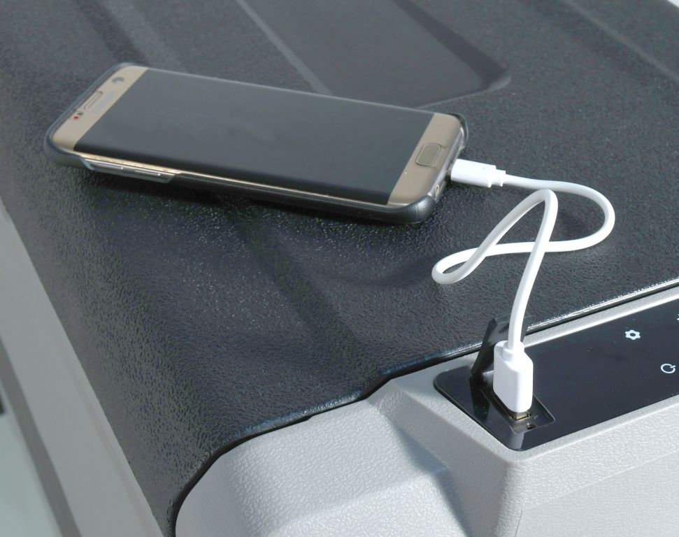 Chladicí box může být napájen z 12 V, nebo 24 V zástrčky automobilů či lodí, nebo z běžné zásuvky 230 V. Je vybaven výkonným kompresorem s chladicím médiem a lze jej použít jako chladničku s teplotou 0 – 10°C, ale také jako mrazicí box s teplotou až -20°C. Režimy chladicího boxu zahrnují ECO mode pro úsporu elektrické energie a MAX mode pro rychlé ochlazení obsahu až k -20°C (při okolní teplotě 25°C). Dále je box vybaven inteligentním systémem ochrany před vybitím připojeného akumulátoru, který lze nastavit skrze menu přístroje. Chladící box je osazen displejem s veškerými ovládacími prvky. Vnitřní prostor boxu je rozdělen do dvou částí s možností rozdílného nastavení teplot, nebo lze vyjmout dělící příčku a využít tak celý prostor jako jeden. Díky tomu je možné rozložení potravin a nápojů podle požadavků na optimální chlazení. Vnitřní prostor boxu je dále opatřen LED osvětlením. Madla na vnější straně boxu z odolného plastu společně s gumovými kolečky zajišťují výtečnou mobilitu zařízení. Vnější plášť je proveden z odolného plastu šedé barvy, který spolu s perfektní PU izolací zajišťuje dlouhodobé zachování stabilní teploty uvnitř boxu a zaručuje velmi nízkou spotřebu energie. Okraj ovládacího panelu je doplněn o krytou USB zásuvku pro napájení zařízení s USB konektorem.