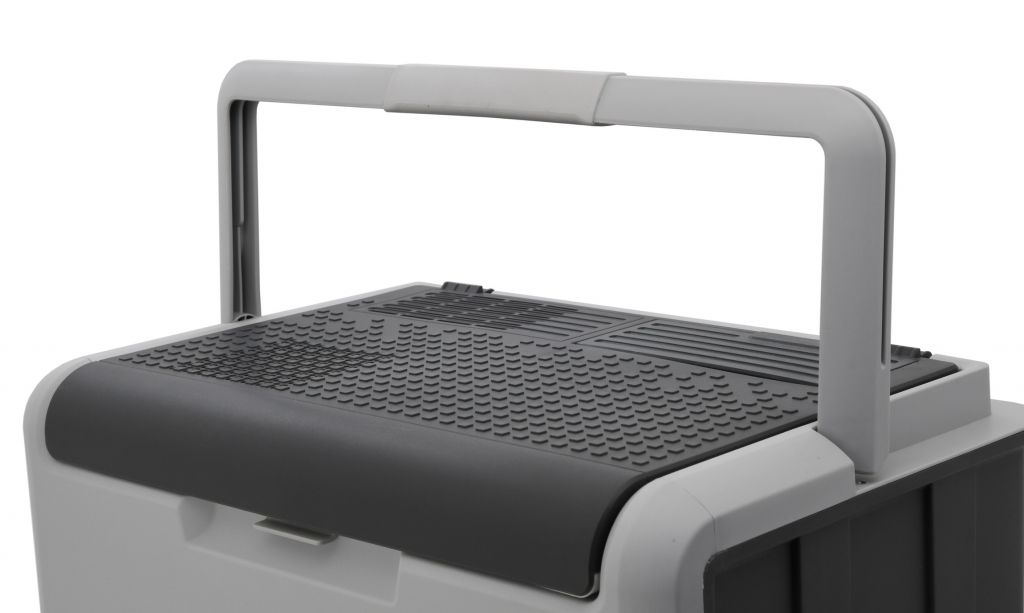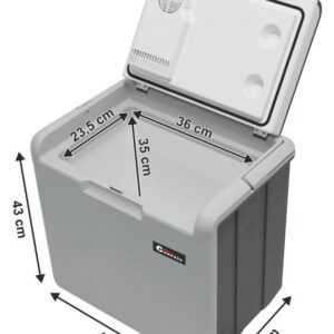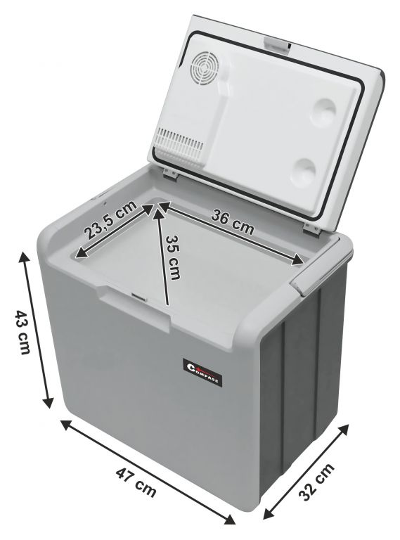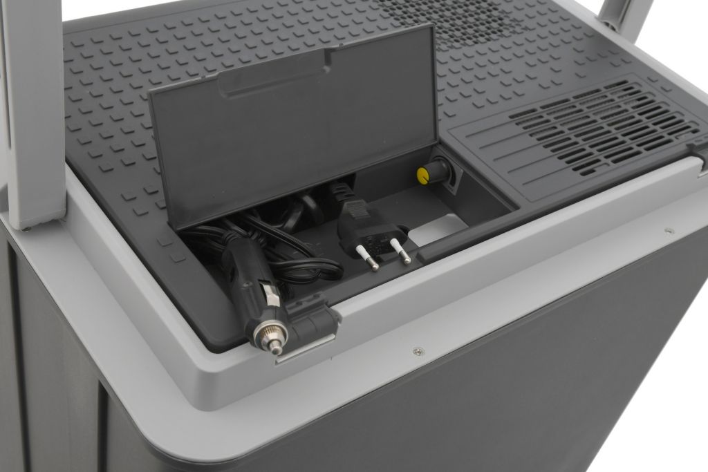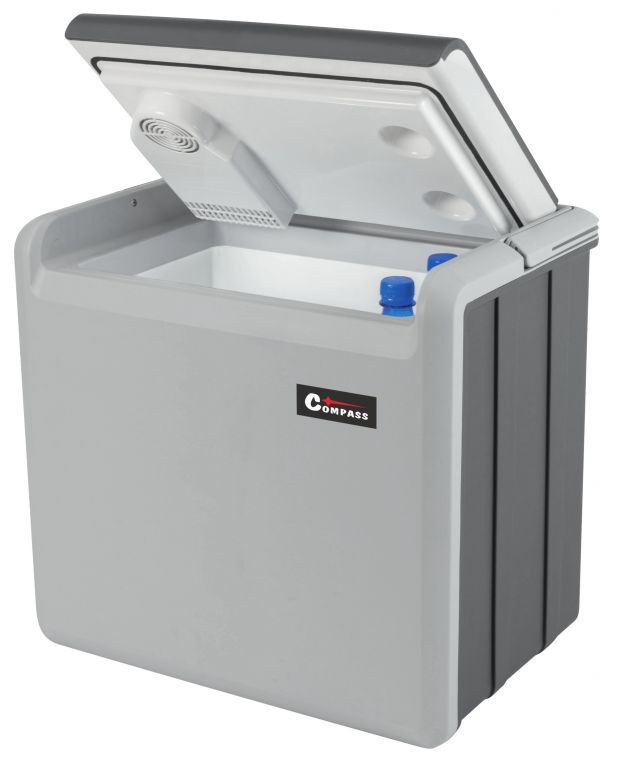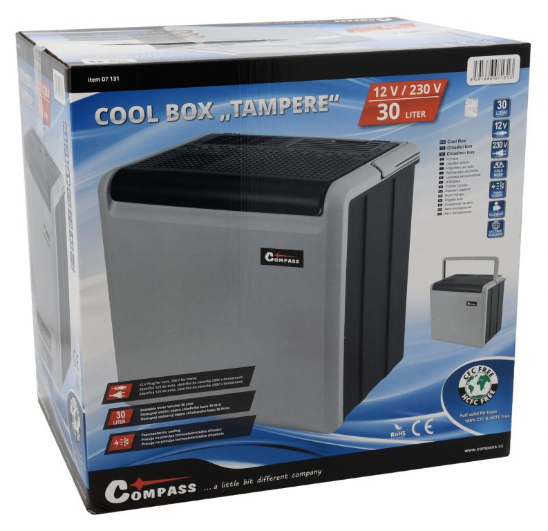 Přenosný chladicí box, napájení ze zásuvky autozapalovače 12 V nebo z běžné zásuvky 230 V. Ideální společník na cesty, na dovolenou, na piknik, nebo i na nákupy. Vnitřní objem 30 litrů pojme velké množství potravin. Díky vybrání ve víku lze do chladicího boxu pohodlně umístit i vyšší lahve s nápoji. Chladicí box je velmi snadno přenosný, je vybaven praktickou rukojetí pro snadné přenášení. Jedná se o chladicí box na termoelektrické bázi s ventilátorovým systémem chlazení neobsahujícím žádné freony. Umožňuje dosáhnout uvnitř boxu teplotu o 15 – 20 °C pod okolní teplotu (při 25°C). Při připojení do zásuvky 230 V lze otočným ovladačem nastavit požadovanou intenzitu chlazení (ovladač je umístěn ve schránce s kabely), čímž lze významně ušetřit spotřebu energie.