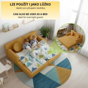 Proměňte dětský pokoj v říši fantazie! Tato pohovka umožní dětem stavět hrady, skrýše i pohodlné pelíšky. Bezpečné a měkké polstrování zajistí klid rodičům a radost dětem. Každý den přináší nové možnosti, jak si hrát, odpočívat nebo číst pohádky.