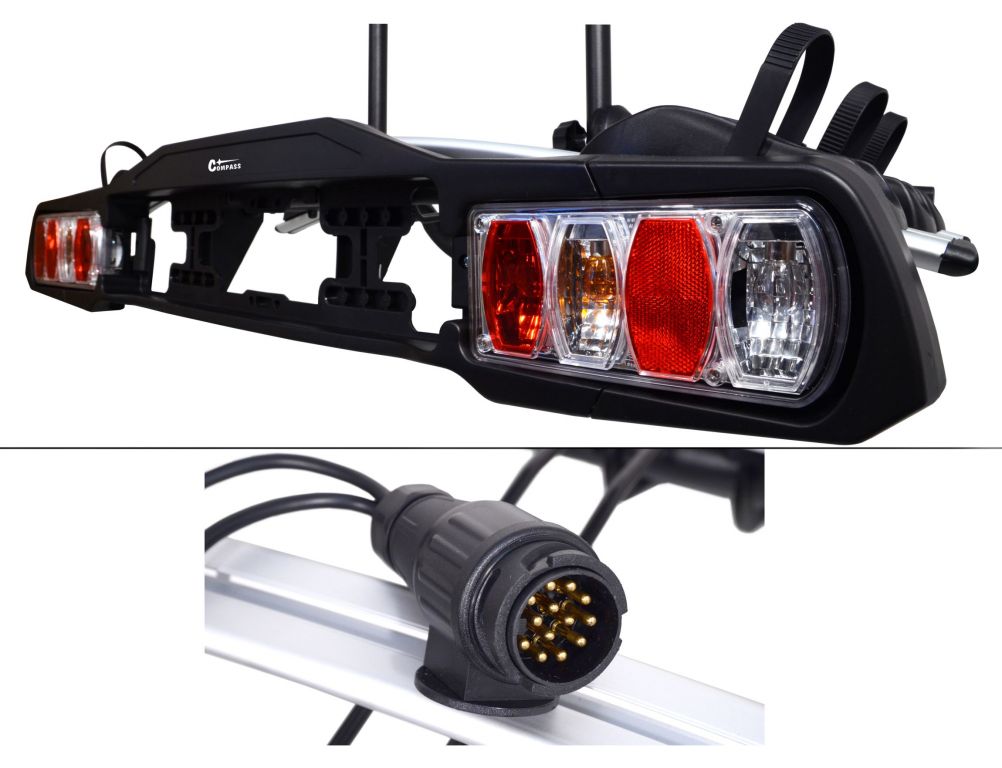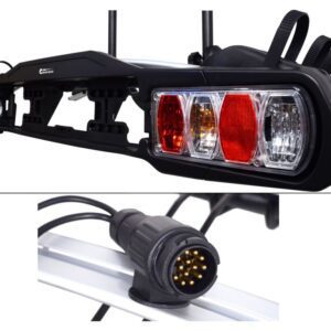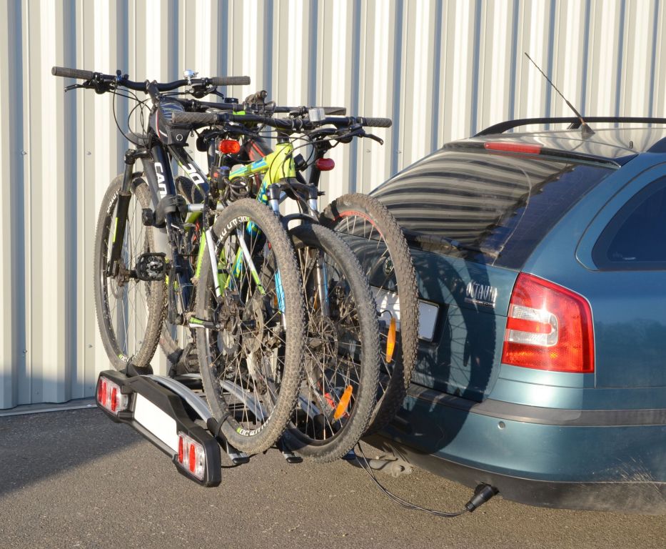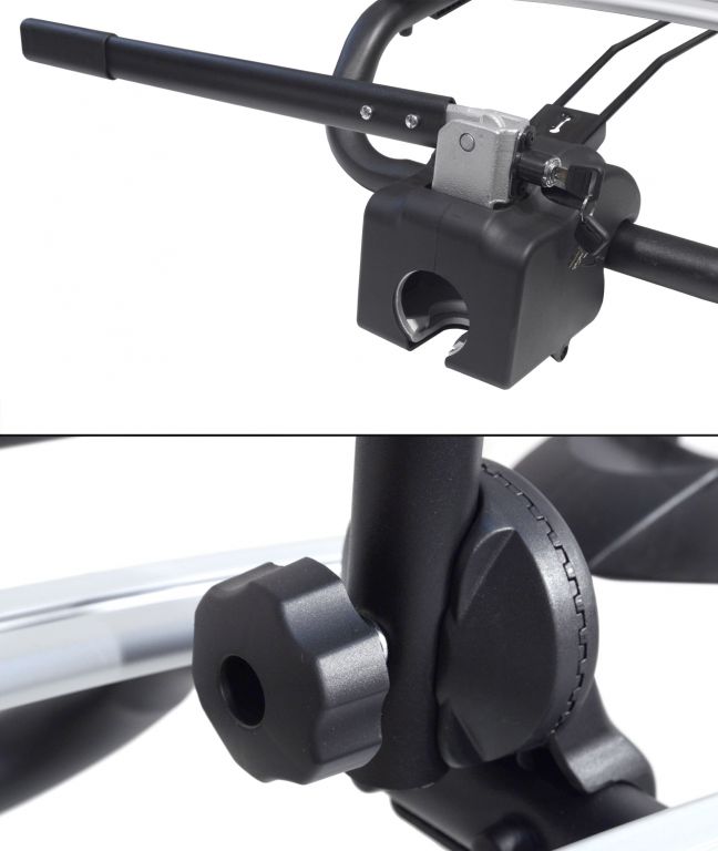 Upevnění kola do nosiče se obejde bez nářadí, provádí se uchycením držáku na rám a dotažením spon na kola, umístěných na základně. Mechanismus je uzamykací a nehrozí tak odcizení kola. Nosič je precizně zhotoven z oceli a každá ze tří základen pro jízdní kola je z hliníku stříbrné barvy. Nosič se připevňuje na kouli tažného zařízení, a zajišťuje se pomocí robustní páky a zámku. Dále je vybaven panelem s osvětlením a místem pro uchycení registrační značky (SPZ). Světelný panel je připojen k zásuvce tažného zařízení vozidla pomocí 13-pólového konektoru a je vybaven kompletními zadními svítilnami, včetně osvětlení SPZ.