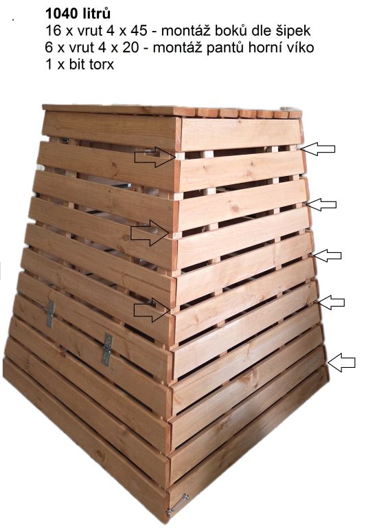 Masivní dřevěná konstrukce z české produkce, ošetřená přírodním olejem, odolá povětrnostním vlivům a vydrží dlouhé roky. Objem 1040 l a promyšlené proudění vzduchu zajišťují rychlý rozklad bioodpadu. Rozměry 113 × 113 × 123 cm, síla stěny 20 mm a dodání v polosestaveném stavu usnadní montáž i náročnějšímu uživateli.