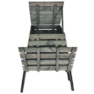 - Snadná manipulace: víko na pantech a otevírací část umožní pohodlné přidávání i vybírání kompostu.