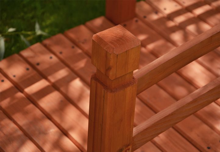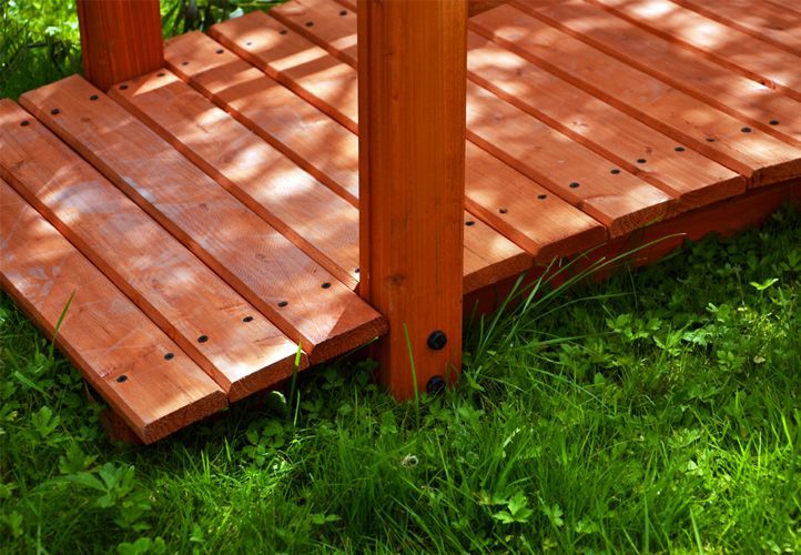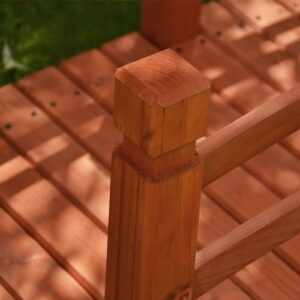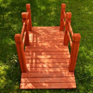 Okrasný zahradní můstek z masivní borovice v červenohnědé barvě. Můstek je ideální pro přemostění potoka, jezírka nebo malého rybníčku, skvěle ale poslouží i jako originální dekorace.