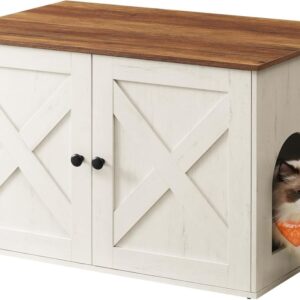 Skříňka na kočičí WC s dvířky, bílo-hnědá, 80x53x50 cm