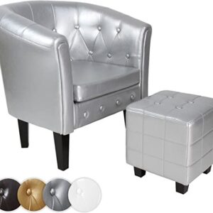Klubové křeslo s taburetem Chesterfield, stříbrné