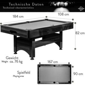 GamesPlanet Kulečníkový stůl s vybavením 6ft, černá/antracit