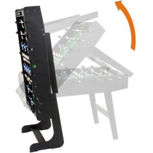 Hlavním rysem tohoto modelu je sklopný mechanismus. Tak jej můžete velmi úsporně uložit po skončení hry pouze několika hmaty. Je zajištěn dvěma pojistkami, které zajišťují stabilitu nohou při postavení. Jako další funkce je Belfast vybaven protiskluzovými, ergonomicky navrženými rukojeti, kluznými ložisky pro snadnou hru. Stolní fotbálek má bezešvé vyvýšené rohy hřiště, které zabrání uvíznutí míče v roku.