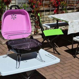 Mini gril není jen praktický, ale okouzluje i svým vzhledem, tento retro design a výrazná barva upoutají každého. Gril má uzamykatelné víko a nastavitelný přívod vzduchu, také obsahuje další rošt.