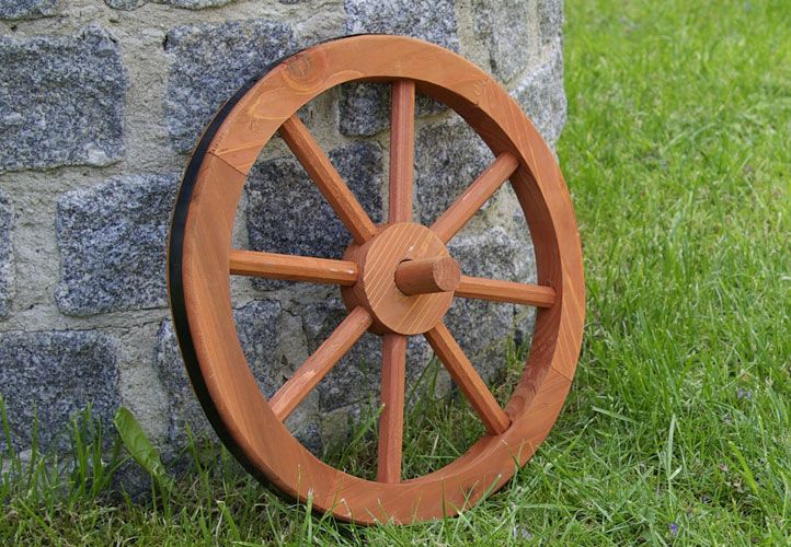 PorovnatDřevěné rustikální kolo jako dekorace do Vaší zahrady.