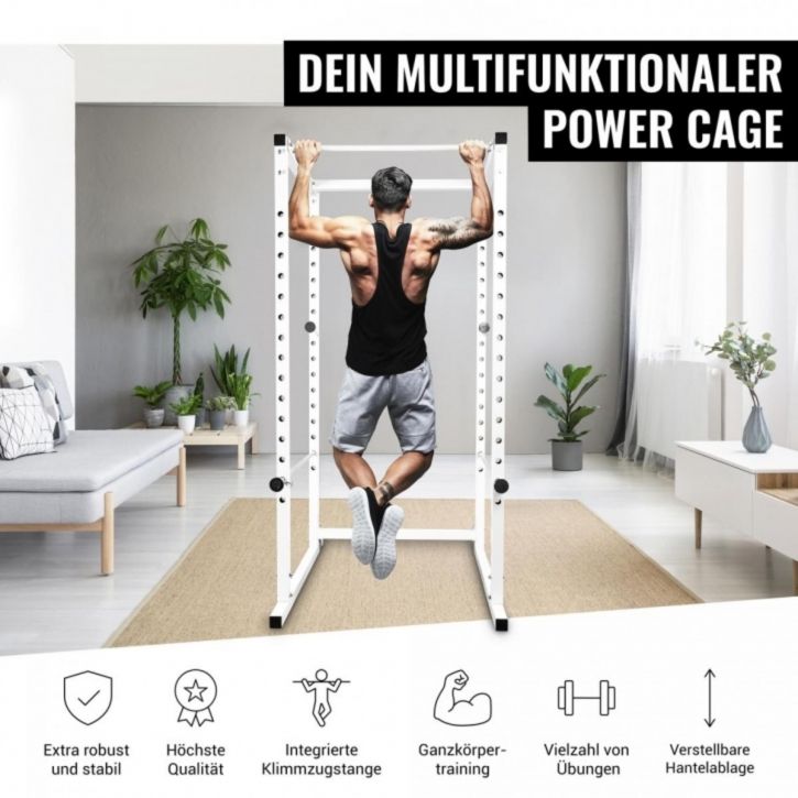 Klec v bílé barvě od společnosti Gorilla Sports nabízí ideální řešení. Pokud svaly selžou, nastavitelné kovové vzpěry zachytí činku. Takto můžete bezpečně trénovat například dřepy s činkou na ramenou nebo tlaky na ramena. Rám klece je vyroben z pevných čtyřhranných ocelových trubek a stojany na činky jsou nastavitelné v 15 směrech. Kliky jsou jedním z nejúčinnějších cviků s mrtvou vahou pro zádové svaly, a proto jsou ideálním doplňkem tréninku s činkami.