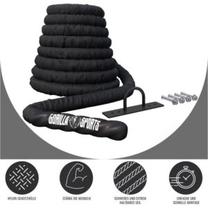 V dnešní době je bojové lano standardní součástí vybavení mnoha fitness studií. Čím dál častěji začíná být oblíbeným tréninkovým zařízením i v domácích posilovnách. Nezabírá mnoho místa při skladování. Na základě různých cviků můžete trénovat prakticky všechny oblasti horní poloviny těla. Pokud uvažujete o pořízení tohoto druhu vybavení, měli byste se ujistit, že vaše domácí posilovna má správné rozměry aby jste mohli plně toto zařízení využít. Pokud jde o různé varianty bojových lan, existují někdy významné rozdíly. Čím delší je lano, tím náročnější je trénink a je lepší začínat s kratším lanem. Úroveň obtížnosti můžete zvýšit také změnou vzdálenosti mezi vámi a příslušným pevným bodem a vzdálením se dozadu. Důležitý je také průměr lana. Čím silnější je lano, tím větší úsilí musíte vynaložit.