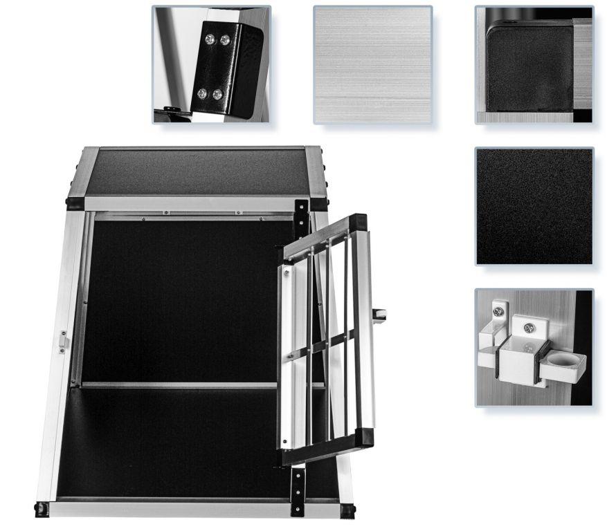 Díky široké sadě mřížek se váš pes může vždy uvolněně dívat ven z boxu, stropní panel funguje jako sluneční clona. Přepravní box se díky hladkému povrchu snadno čistí. Plastové rohy chrání zvíře nejen před zraněním v přepravním boxu, ale také před poškozením ve vozidle.