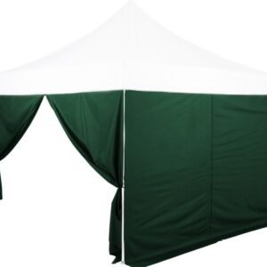 Boční stěna INSTENT “Pro” je vyrobena z polyesterové tkaniny o gramáži 180 g/m² s dodatečnou povrchovou úpravou PA. Kromě vodoodpudivých vlastností je proto tkanina také prodyšná, aby se zabránilo hromadění tepla. Boční stěny bez oken lze pohodlně otevřít a zase zavřít pomocí zipu uprostřed. Pro lepší odolnost jsou jezdec a rukojeť vyrobeny z kovu.