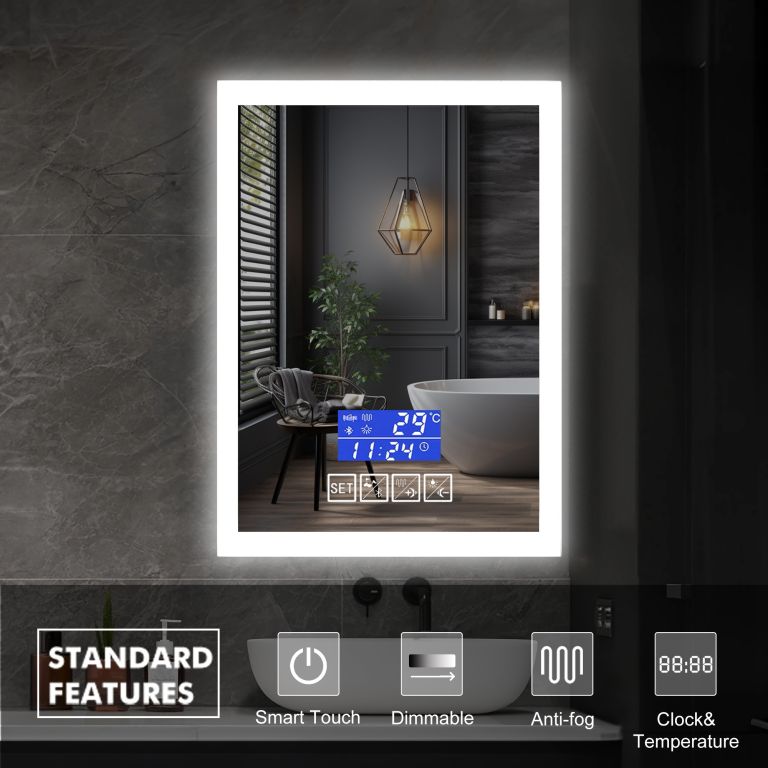 Zrcadlo v sobě kloubí designový doplněk, úsporné osvětlení koupelny (když nepotřebujete osvětlit koupelnu celou) a stane se neocenitelným pomocníkem pro ženy – už dost špatného nebo nedostatečného svěla při nanášení make-upu. Každé z našich zrcadel disponuje mnoha funkcemi a parametry, které najdete uvedené níže. Stačí si jen vybrat, objednat, upevnit na zeď a zasunout do zásuvky.