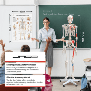 Objevte fascinující svět lidského těla s tímto anatomickým modelem v životní velikosti. Ideální pro studenty, učitele i nadšence, kteří chtějí proniknout do tajů anatomie a pochopit, jak naše tělo funguje. Model je skvělým pomocníkem při studiu i prezentaci, inspirovaný skutečnou lidskou kostrou s detailně vyznačenými svaly a šlachami.