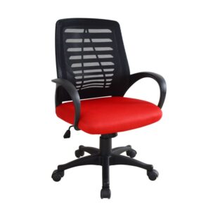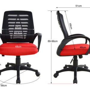 Tato moderní kancelářská židle kombinuje styl a pohodlí, což ji činí ideální pro každodenní použití v kanceláři i doma. Síťované opěradlo poskytuje skvělou ventilaci a udržuje vás v pohodě po celý den, zatímco červený polstrovaný sedák dodává židli stylový a atraktivní vzhled. Polstrované PP opěrky rukou a ergonomický design zajišťují pohodlí i při dlouhém sezení.