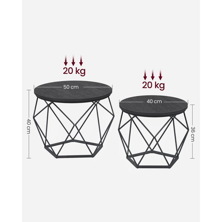 Vytvořte si útulný a funkční prostor s touto sadou dvou konferenčních stolků v elegantní černé barvě. Geometrický design podnoží dodá vašemu domovu moderní nádech a stane se stylovým doplňkem pro každodenní použití.
