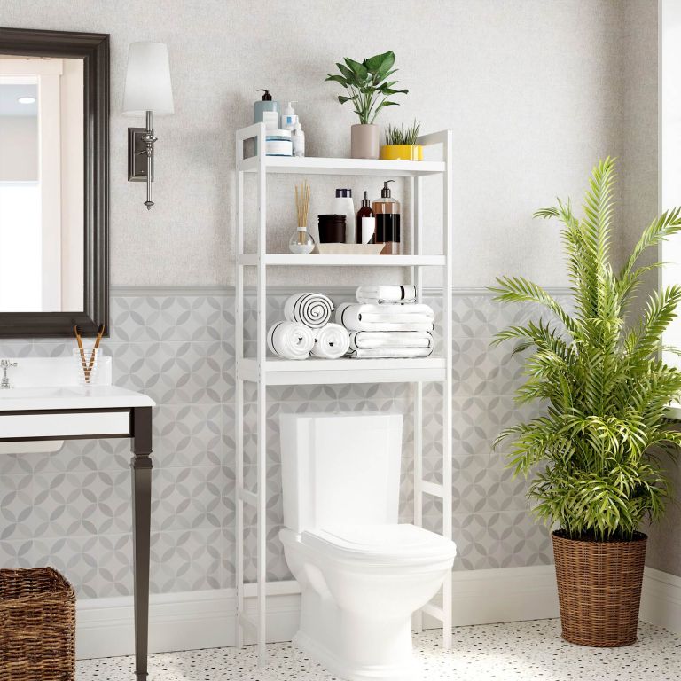 Koupelnová police nad WC 63x26x170 cm, 3 patra, bílá