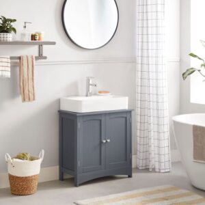 Elegantní šedá skříňka pod umyvadlo dodá vaší koupelně moderní vzhled a zároveň poskytne dostatek úložného prostoru pro všechny nezbytnosti. Díky chytrému vnitřnímu uspořádání si snadno uspořádáte ručníky, kosmetiku i čisticí prostředky. Odolný materiál zajišťuje dlouhou životnost a snadnou údržbu, což ocení každá domácnost.