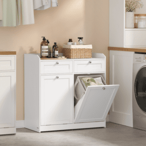 - 2v1 design – kombinuje úložnou skříň a koše na prádlo v jednom.
