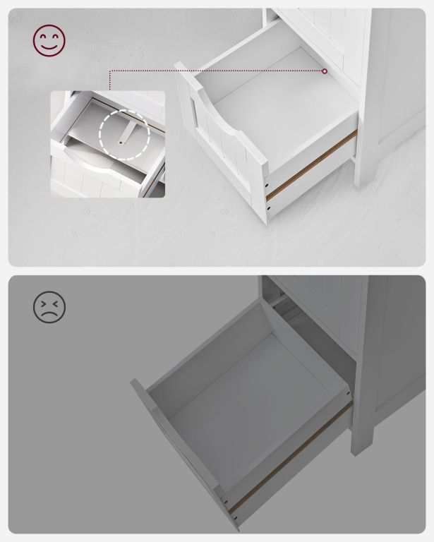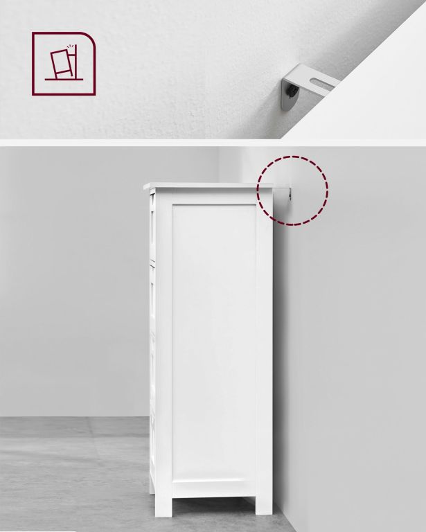 Tento kousek není jen funkčním úložným řešením, ale i estetickým doplňkem. Hodí se nejen do koupelny, ale i do předsíně, kuchyně nebo obývacího pokoje. MDF desky zajišťují pevnost, zatímco protiskluzový a proti převrácení systém přináší bezpečnost. Pokud hledáte styl, odolnost a úsporu prostoru v jednom, tato skříňka vás nezklame.