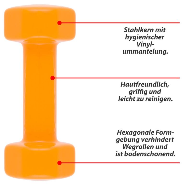 Fitness činky pro začátečníky i profesionály. Činky se skládají z ocelového jádra s vinylovým potahem. Díky tomu jsou šetrné k pokožce, snadno se drží a hygienicky se čistí. Chytrý šestihranný tvar – šestihranný tvar zabraňuje odvalování, je šetrný k podlaze a umožňuje bezpečné postavení pro speciální cviky. Zátěže pro aerobní cvičení, běh, chůzi, core trénink, chůzi, turistiku, gymnastiku, vytrvalostní nebo kondiční trénink. Podporují fyzioterapii nebo rehabilitační opatření. K dispozici ve všech běžných hmotnostech. Ať už je vaše motivace jakákoli, břicho, nohy, hýždě, paže, horní část těla, záda nebo trénink svalů celého těla, naše činky MAXXIVA vás podpoří v dosažení vašich cílů.