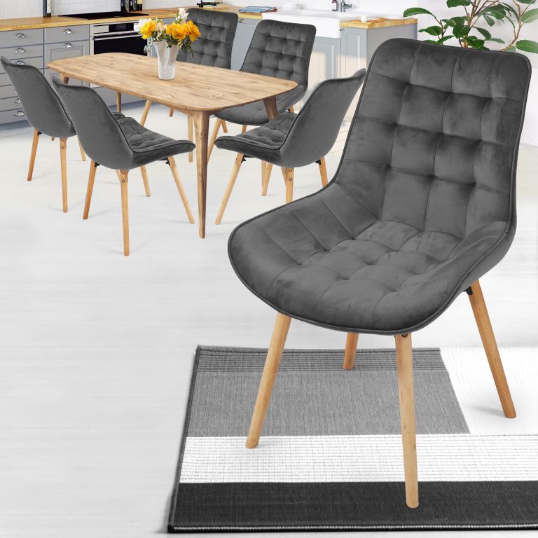 Nábytek ve skandinávském stylu je již delší dobu trendem v domácnostech i komerčních prostorách. Naše vintage jídelní židle upoutá pozornost a vnese do vašeho domova jednoduchou eleganci. Stabilní opěradlo a tvarovaný sedák s čalouněním zajišťují pohodlí při sezení. Její spolehlivost je založena na robustních nohách z bukového dřeva. Tyto čalouněné židle jsou k dispozici v široké škále stylových barevných variant. Naše akcentové židle se díky návodu snadno sestavují a lze je použít pro obytné i komerční účely (jídelny, kuchyně, obývací pokoje restaurace, kavárny a hotely atd.). Ergonomický zakřivený design a polstrovaný sedák a nízká hmotnost těchto retro židlí zajišťují pohodlí při sezení a snadné používání.