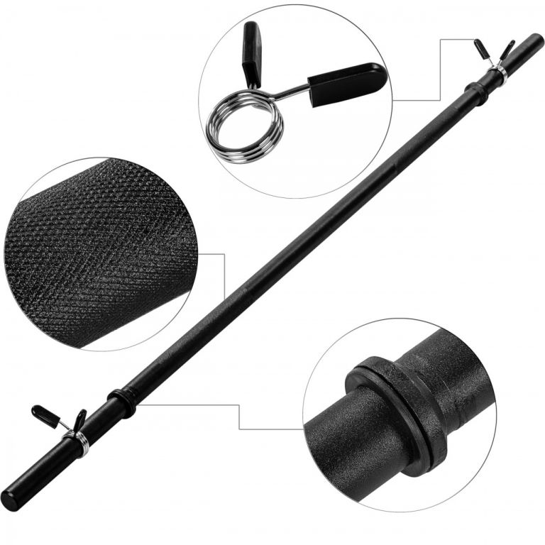 Tyč je vyrobena z odolné oceli s protikorozní povrchovou úpravou. Nabízí průměr 30 mm, díky kterému je kompatibilní s běžnými kotouči. Součástí balení jsou dva pružinové uzávěry, které umožňují rychlou a bezpečnou výměnu závaží. Rýhovaná madla zajišťují pevný úchop i při intenzivním tréninku.