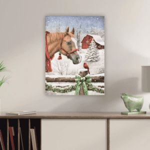 Naše dekorativní LED obrazy jsou k dispozici v různých velikostech a designech. Dodá vašemu schodišti, obývacímu pokoji, kanceláři nebo ložnici barevné akcenty. Tyto dekorativní obrazy, potištěné moderními, vysoce kvalitními fotografickými tisky, jsou vždy ozdobou každé místnosti a rozzáří vaše okolí. Zimní motiv koně a vrabce na zasněžené farmě vytváří příjemnou zimní náladu a atmosféru. Toto nástěnné umění září okouzlujícím světlem díky jedné LED diodě a 40 optickým vláknům. Vysoce kvalitní fotografický tisk na plátně je nejen ideální na Vánoce, ale také krásnou dekorací nebo skvělým dárkem. Osvětlení zajišťují energeticky úsporné LED diody.