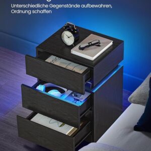 Vneste do své ložnice moderní atmosféru s tímto stylovým nočním stolkem v černém dekoru dřeva. LED osvětlení s nastavitelnými barvami vytvoří jedinečnou náladu podle vaší aktuální chuti a promění každý večer v příjemný zážitek. Tři prostorné zásuvky nabízí dostatek místa na vše potřebné – od knih po drobnosti, které chcete mít po ruce.