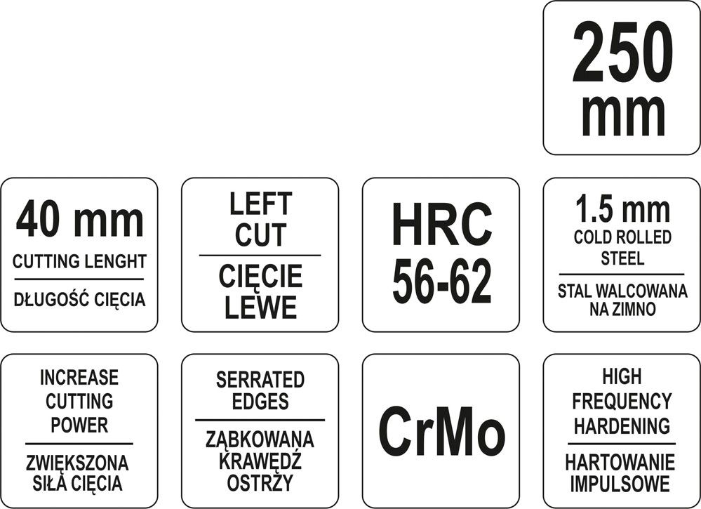 Zhotovené z CrMo oceli 46-52 HRC, s čelistmi s tvrdostí 56-62 HRC s oxidovaným černým povrchem. Oplastované rukpojeti zabezpečují míru komfortu při práci.