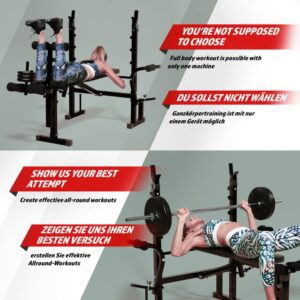 Díky této posilovací lavici můžete trénovat profesionálně i doma. Tato posilovací lavice je ideální pro cílený trénink jednotlivých svalů nebo svalových skupin. Různé možnosti tréninku hrudníku, břicha, paží a ramenních svalů vás dovedou k úspěchu a sníží stres. Multifunkční posilovací stanice je vhodná pro začátečníky i pokročilé uživatele.