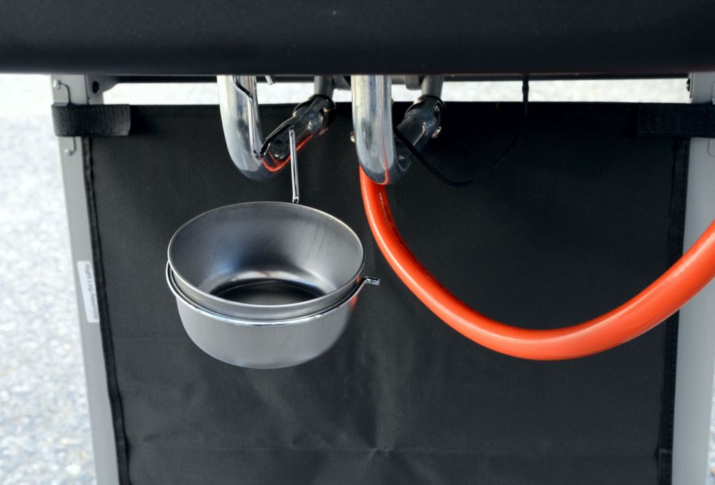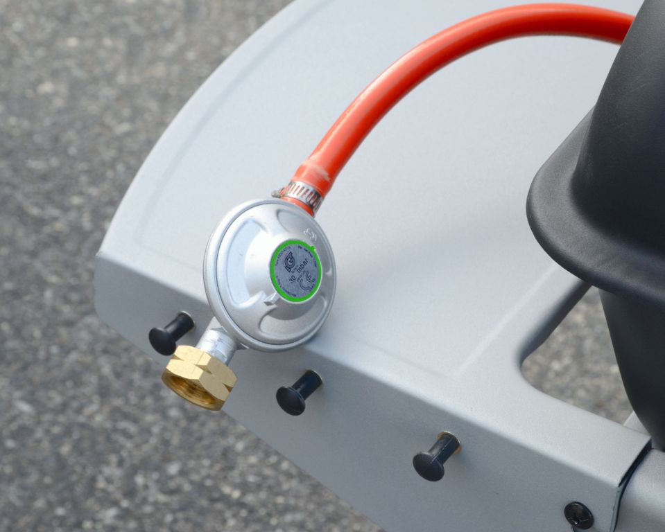 Tento plynový gril má plynovou regulaci plamene, tudíž je vše rovnoměrně tepeleně upraveno, tak jak má být. Tuk skapávající z grilovaného masa stéká po stěnách grilu do odkapávací misky, která je umístěná ve spodní části grilu. Přímo nad hořáky je umístěn speciální kovový profil, který zabraňuje odkapávání tuku na plamen a přímému ohřevu mřížky plameny pouze v jednom místě. Praktičtí uživatelé uvítají odkládací police,které jsou sklopné, pro snadé uskladnění. Pojízdná kolečka Vám pomohou přemístit gril na jakékoliv místo budete potřebovat.