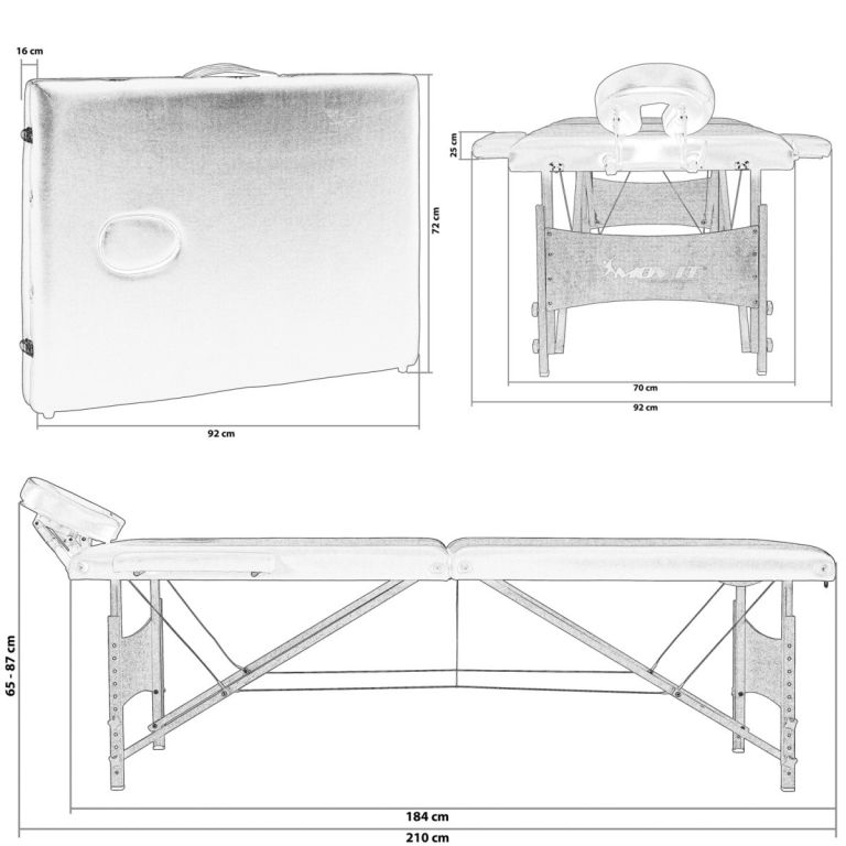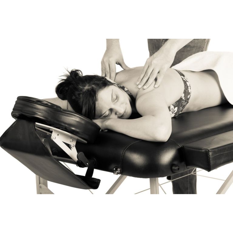 Toto přenosné masážní lehátko vám nabízí vše, co si jen při relaxaci můžete přát. Disponuje odnímatelnou a výškově nastavitelnou opěrkou hlavy, otvorem pro obličej a odnímatelnými loketními opěrkami. Robustní rám z bukového dřeva s diagonálními příčkami a ocelovým lankem zajišťuje lehátku bezpečnost a stabilitu. Lehátko je možno nastavit dle potřeby do devíti výškových poloh a je velmi pohodlné. Díky speciálnímu potahu lehce odstraníte jakékoliv stopy po vodě, potu nebo masážním oleji. Lehátko velmi jednoduše a rychle rozložíte i složíte a uložit si jej můžete v přenosném obalu, který ho uchrání před znečištěním. Obal je součástí balení.