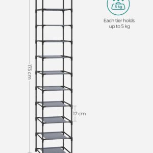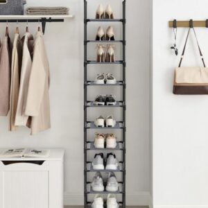 Už žádné rozházené boty v předsíni nebo skříni. Regál na boty s 10 policemi se stane elegantním a praktickým pomocníkem, který šetří místo a udržuje domácnost upravenou. Jeho nadčasový šedý design se hodí do každého interiéru a působí čistě a moderně.