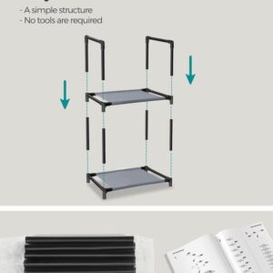 Pevná kovová konstrukce a police z netkané textilie unesou až 5 kg na každou úroveň. Výška mezi policemi je ideální pro běžnou obuv, ale regál lze přizpůsobit – odebráním polic vytvoříte prostor i pro vysoké boty nebo kozačky. Díky možnosti rozdělit stojan na dvě menší části je praktický i do menších prostor a poskytuje flexibilní řešení pro každého.