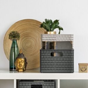 Moderní design a kvalitní provedení plastového úložného boxu ve stylu ratanového výpletu nabízí široké využití v celé domácnosti. Praktické úchytky pro snadné přenášení.