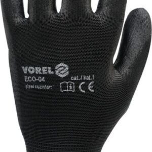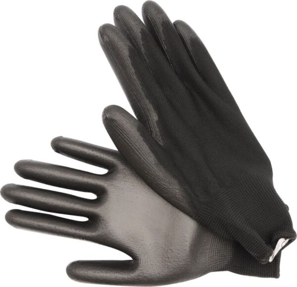 Rukavice jsou zhotoveny z polyesteru (steh 13) potaženého polyuretanem a zakončené odolným lemem.