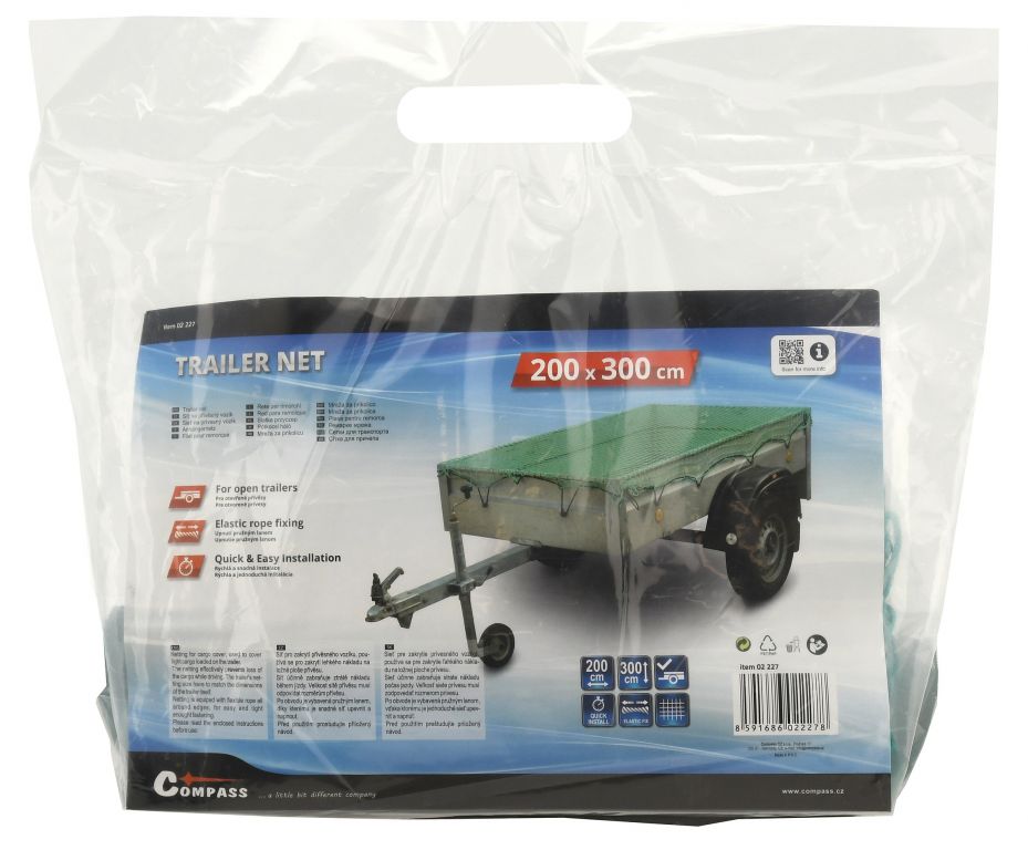 Síť je určena pro zakrytí nákladu přívěsného vozíku, chrání náklad před poškozením i ztrátou z ložné plochy. Velikost sítě musí odpovídat rozměrům přívěsu, tato síť má rozměry 200 x 300 cm s oky čtvercového tvaru s rozměry 4 x 4 cm.