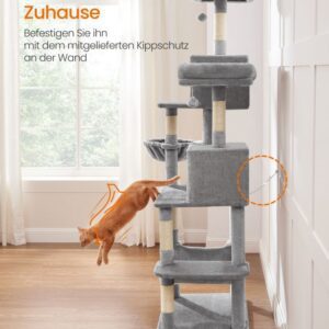 Vytvořte svému mazlíčkovi ráj přímo doma. Tento kočičí strom nabízí vše, co kočka potřebuje – šplhání, odpočinek i bezpečný úkryt. Měkké pelíšky a prostorný hamak jsou ideální na lenošení, zatímco škrabadla ochrání váš nábytek.