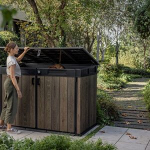Díky objemu 2 020 l v ní lze uschovat až dvě popelnice o objemu 360 l nebo tři popelnice o objemu 240 l.