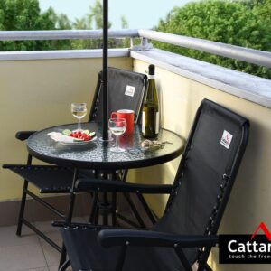 Dvoudílná konstrukce je skladná a lehce složitelná. Stačí do sebe zasunout obě nosné tyče a zajistit páčkou. Poté již stačí jen roztáhnout samotný slunečník. Konstrukce slunečníku má špičaté zakončení, takže je vhodná pro zapíchnutí do země.