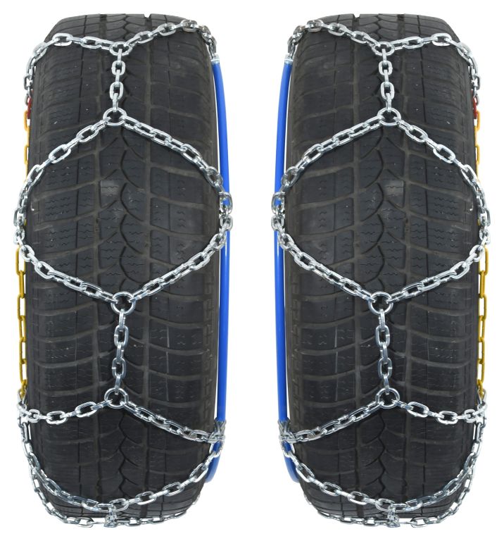 Sněhové řetězy se zesílenými oky, pro osobní vozidla do hmotnosti 2200 kg, splňující evropské normy včetně v Rakousku vyžadované “ÖNORM V 5117”.